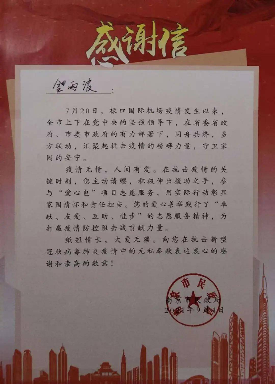 金雨波对复兴通讯社和中新传媒南京代表处主要负责人说:我将一如既往高举“友善、良知、爱心”旗帜,在发展自己的同时,力所能及向社会奉献自己的力量。