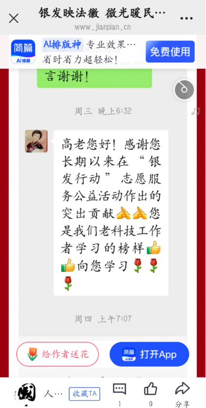 今年3月,在北京召开的拥军爱警经验交流会上,高济昌接受“新时代拥军爱警公益人”表彰。这份荣誉的背后,是他持续多年来的坚守:在黑龙江伊春工作时,他为边防官兵建立“移动法律服务站”;担任陪审员期间,优先审理涉军维权案件 11 件。今年“八一”前夕,他带着慰问品三赴抗战老兵住所。如今他正协助金盾志愿者协会筹建“老兵法律援助站”,目前已收集到37位老兵的司法需求。