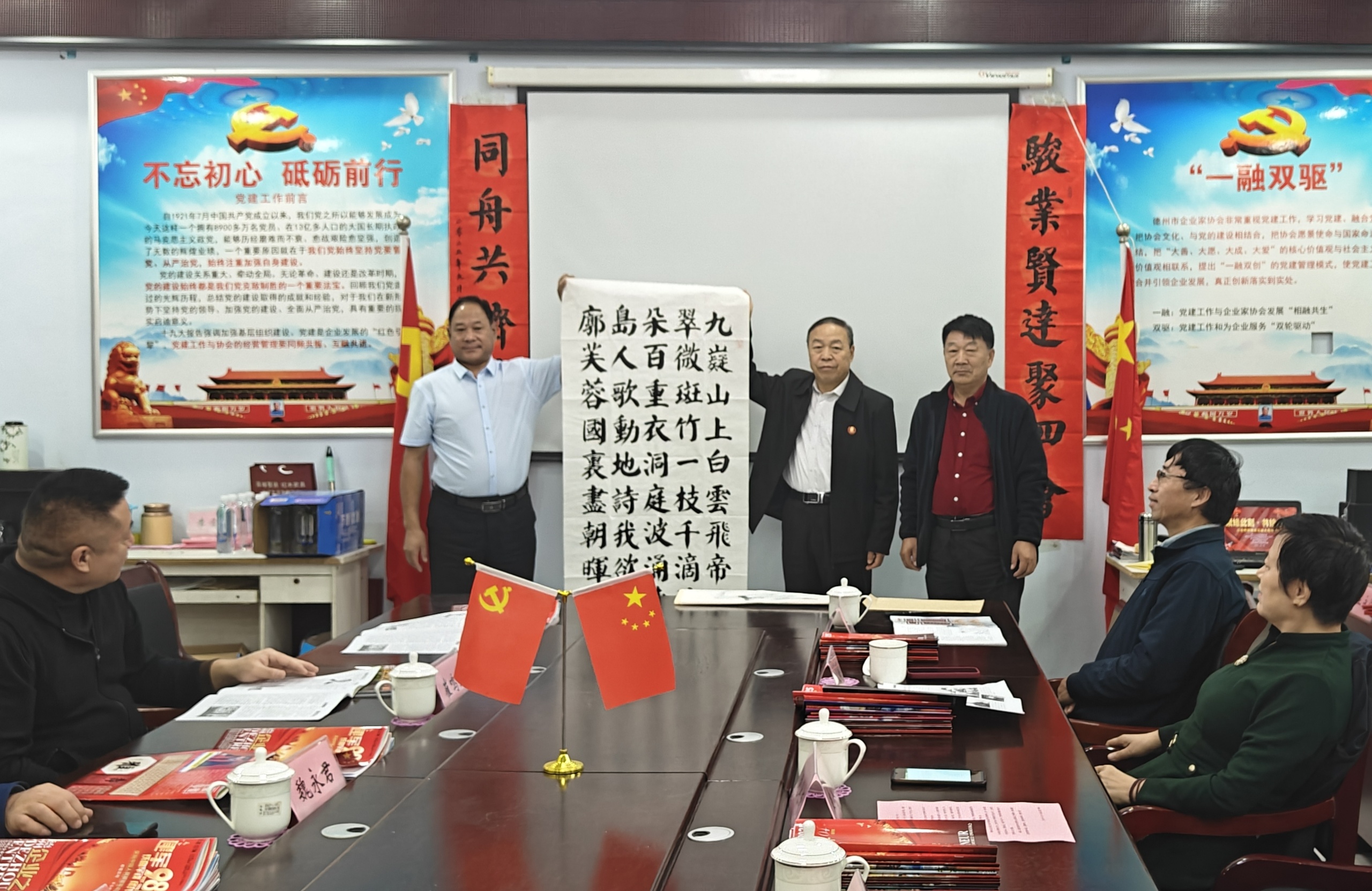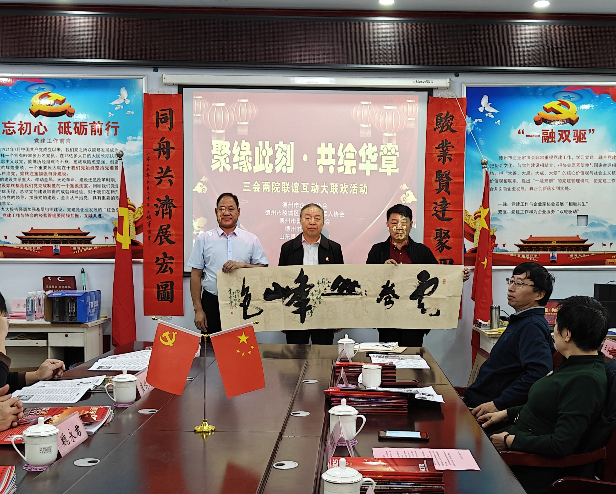 本网讯(蓝乙人 蒙仕荣 联合报道)10月9日,德州市企业家协会携手德州市剪纸艺术协会、陵城区关爱退役退伍军人协会、山东真卿书画研究院、德州书画研究院,共同举办“三会两院”联谊会。德州市企业家协会会长祖传鹏、副会长陈建州、