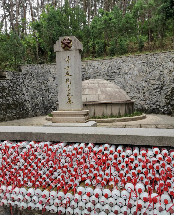 我来到河南新县田铺乡许家洼,将军的墓地坐落在母亲墓旁,青山环抱,松柏常青。墓前没有华丽的装饰,只有一块朴素的石碑,刻着“许世友同志之墓”。按照将军遗愿,墓中陪葬着三样东西:一把他生前使用的手枪、一瓶茅台酒,还有几枚军功章——枪是他戎马一生的见证,酒是他侠骨柔情的寄托,军功章是他为国尽忠的勋章。这一幕,与电视剧里的下葬场景完全重合,青山肃穆,松柏垂泪,仿佛在诉说着将军的传奇一生。