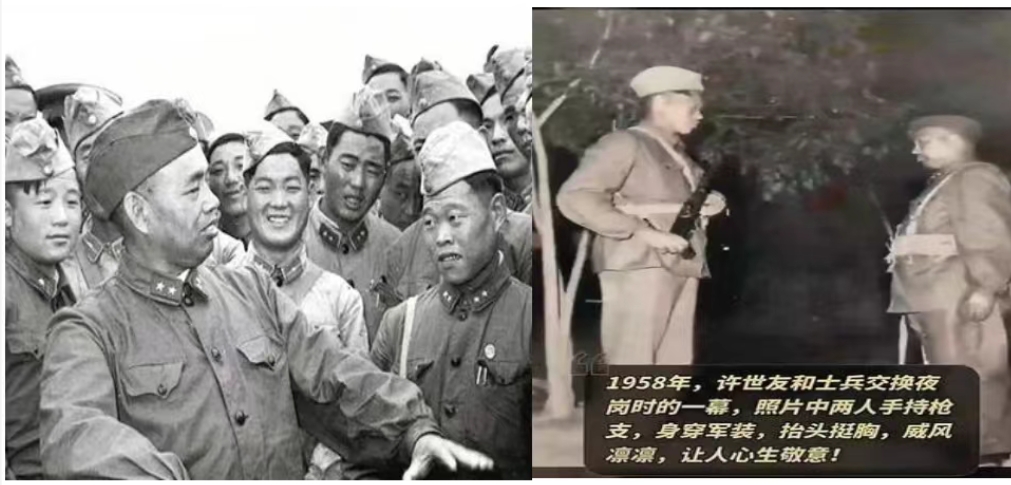1958年,毛主席看了师政委下连当兵的报道后,联想到部队正规化后军官脱离士兵的现象,便向许世友提出“军队干部下连当兵” 的号召。电视剧里,他脱下将军服换士兵装的场景令人动容,而鲜为人知的是,毛泽东接见南京军区常委时,握着他的手特意叮嘱:“世友啊,地方干部要进工厂当工人、下乡当农民,你们部队干部也可以下连当兵,能不能作个决议?”许世友不假思索地回答:“完全可以,坚决照办!”回到家中,他当即脱掉穿惯的“布草鞋”,换上战士的解放鞋和军装,戴上船形帽,对着镜子反复打量,还问妻子:“你看我像不像士兵?”妻子笑答 “就是老了点”,他却认真道:“战士们说像才是真的像”。