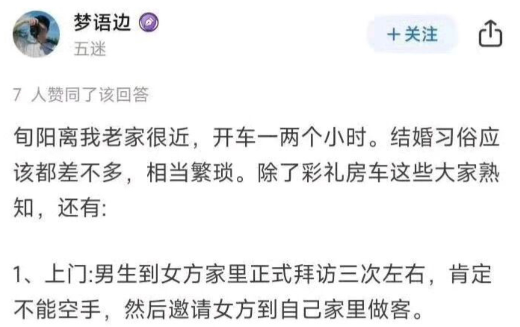 结果果然发现安康旬阳当地的结婚习俗跟其他地方还相当不一样,具体来说,主要包括以下几个方面,首先是上先要去三次,还不能空手去。
