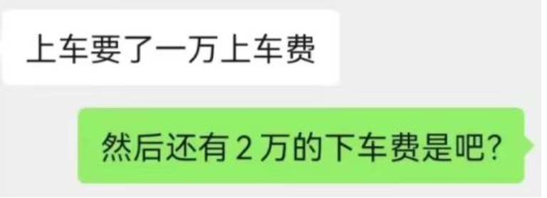 关键是这次事件的女生比较过份,要了上车钱还要下车钱,还都是五位数起步。