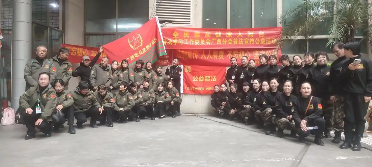 当晨光穿透薄雾,2025年12月6日的锦绣家园正上演着一场温暖与力量交织的动人篇章。清晨8:30,来自八方的60名老兵志愿者如星辰汇聚,在中国广西老兵志愿者总队陈正林总队长的旗帜引领下,以铿锵步伐开启了一场"法治护航万家"的公益征程。